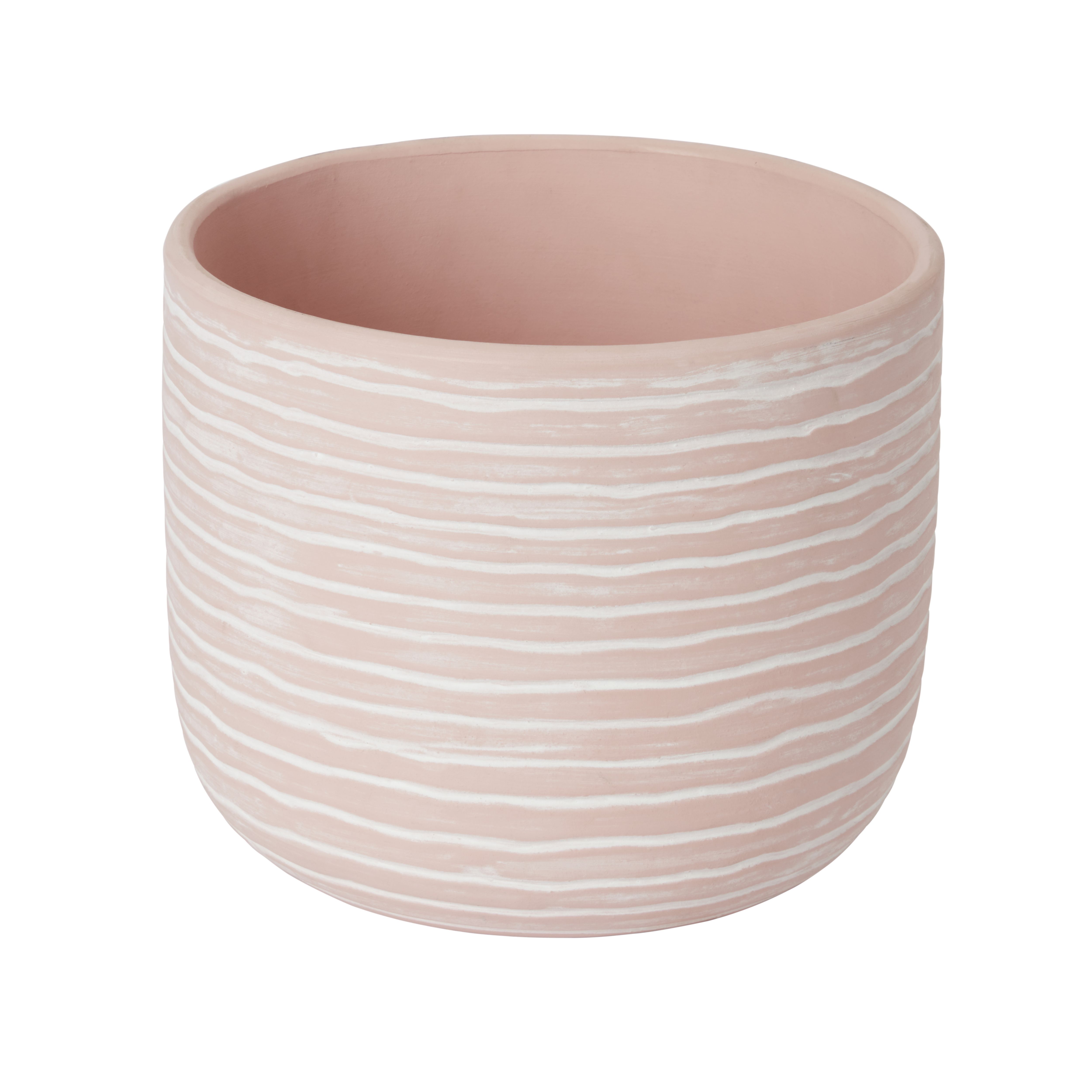 Goodhome White Clay Wood Effect Circular Plant Pot Dia 27 8cm Diy At B Q